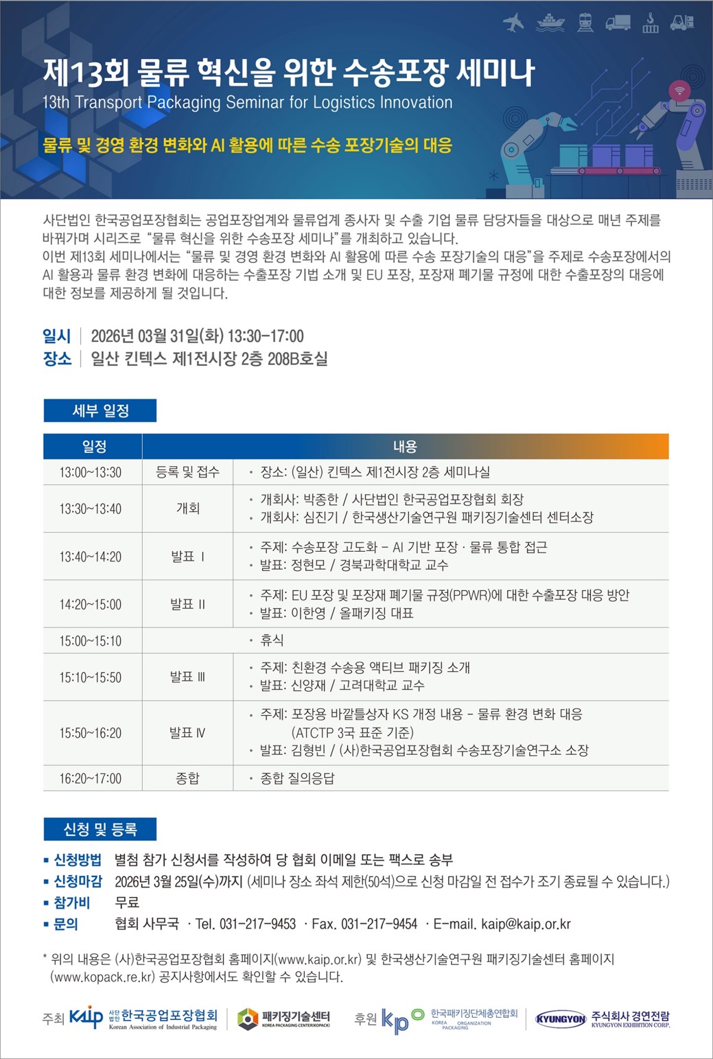 접수마감 제13회 물류 혁신을 위한 수송포장 세미나