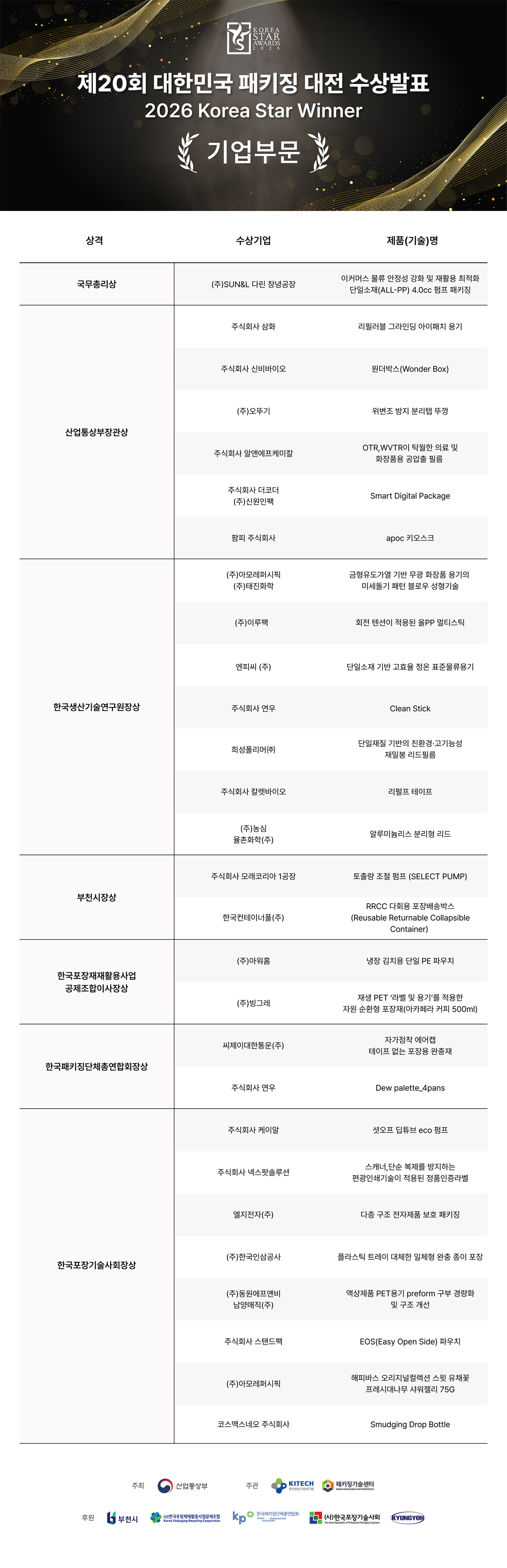 2026 대한민국 패키징대전 심사결과발표(기업부문)